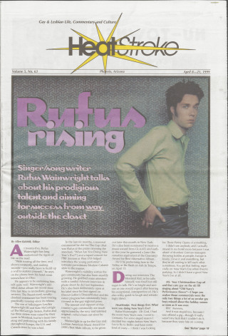 Heatstroke, Vol. 5, Number 62, (March 25- April 7, 1999) Selected article titles: Chelsea Men: Drawing on gay New York to create nationwide laughs; The Barebones Truth About Bareback Sex; Flanagan makes history: first openly gay man to run for Senate; APAZ initiates new ¡ob program for HIV+; Barney Frank joins Florida gay rights activists at rally